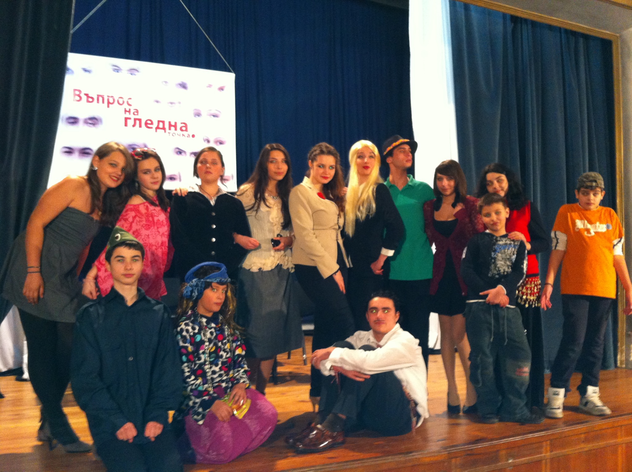 Премиерата на „Въпрос на гледна точка“ мина добре. Исках повече, но въпреки това съм щастлива, че съм създала стабилно и стойностно представление. Не съм доволна от половината от изпълненията на децата и това, надявам се ще се поправи в събота. Играем на 23 март 2013 (събота) от 12ч на Камерна сцена „Славянска беседа“. Вълнувам се дали ще получим награди 😉